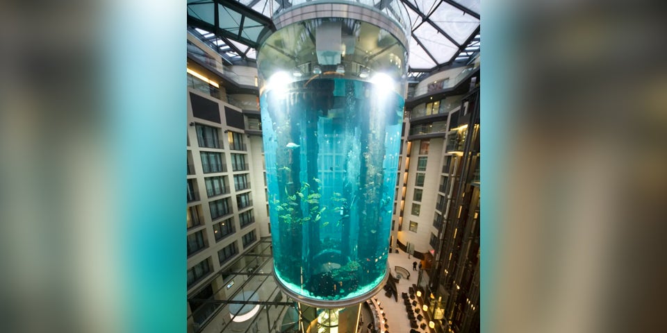 Der Aquadom im Sea Life war nach Angaben der Betreiber im Internet das "größte, zylindrische frei stehende Aquarium der Welt", eine vielen Touristen bekannte Attraktion in Berlin. Der Behälter aus Acrylglas war 16 Meter hoch und wies einen Durchmesser von 11,5 Metern auf. Besucher konnten in einem Aufzug durch das Innere des Aquariums hindurch fahren.