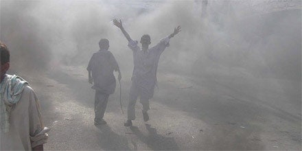 "Durch die Explosion sind viele Häuser eingestürzt", sagte ein Reporter der Nachrichtenagentur Reuters in Kohat. Die Menschen versuchten, Verschüttete zu retten. Der zuständige Provinz-Polizeichef Fayyaz Turu sprach von 18 Menschen, die zunächst aus den Trümmern gezogen worden seien. Stunden zuvor hatte der Taliban-Sprecher Azim Tariq der Nachrichtenagentur Reuters per Telefon von einem unbekannten Ort aus gesagt, die neuen Anschläge seien Vergeltung für die Angriffe der USA mit unbemannten Flugzeugen. "Die Amerikaner führen mit der Zustimmung Pakistans Drohnen-Angriffe aus", sagte Tariq. "Wir werden mit Selbstmordangriffen auf die Sicherheitskräfte, die Polizei und Regierungsbüros Rache üben."