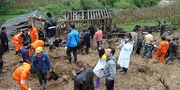Die Erdmassen stauten zudem einen Fluss, vorsorglich mussten 800 Einwohner weiter flussabwärts in Sicherheit gebracht werden. Für die Bergungsarbeiten und die Arbeiten an dem aufgestauten Fluss wurden laut Xinhua knapp 2.000 Helfer mobilisiert.