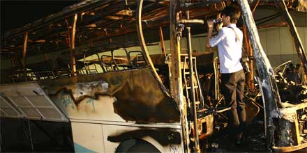 In einem Pendler-Bus eines chinesischen Stahlunternehmens brach Feuer aus.