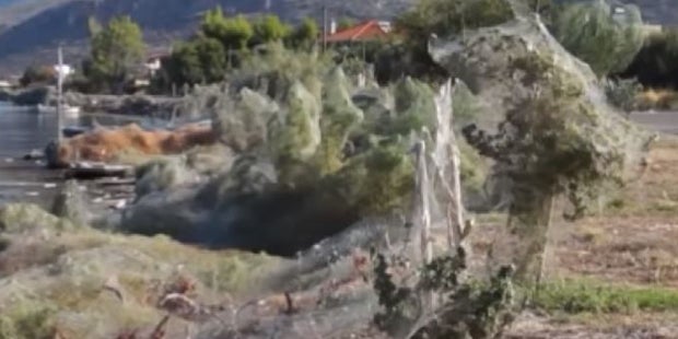 In Griechenland ist ein Mega-Spinnennetz aufgetaucht.