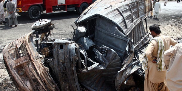 Den Angaben zufolge fing der erste Bus Feuer. Viele Insassen hätten das Fahrzeug nicht verlassen können und seien bei lebendigem Leib bis zur Unkenntlichkeit verbrannt. Die Behörden sprachen zudem von etwa 30 Verletzten, die zunächst vor Ort versorgt und später in die Küstenstadt Karachi ins Krankenhaus gebracht worden seien.
