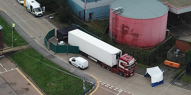 Die Leichen waren in der Nacht auf Mittwoch im Laderaum des Lastwagens im Ort Grays östlich von London entdeckt worden. Die Umstände deuten stark darauf hin, dass es sich bei den Opfern um ins Land geschleppte Migranten handelt. Möglicherweise sind die Menschen im Laderaum erfroren, da der große Lkw-Sattelauflieger zur Kühlung geeignet ist. Offiziell bestätigt ist die Todesursache noch nicht.