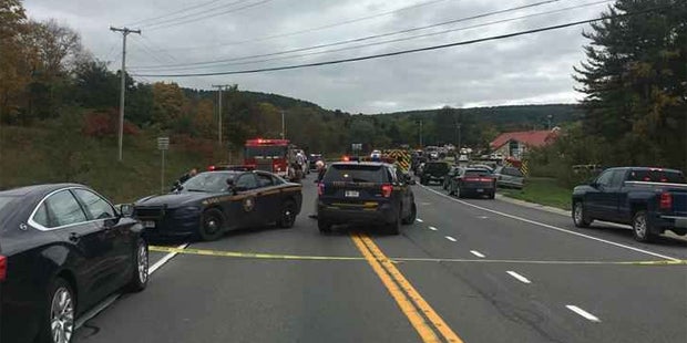 #518news #schoharie Emergency vehicles surround the Apple Barrel Cafe at Route 30 and Route 30A in Schoharie after a van style limousine and an SUV collided injuring several and killing approximately 3 people. pic.twitter.com/6HGfHcBkx9