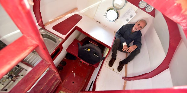 "Wohin weiß ich nicht genau, Barbados oder Guadeloupe", sagte der ehemalige Fallschirmjäger. Die orangefarbene Tonne ist drei Meter lang, 2,10 Meter hoch und wiegt im leeren Zustand 450 Kilogramm. Die kunstharzbeschichtete Sperrholz-Hülle soll den Wellen des Ozeans standhalten. Im Inneren befinden sich eine Schlafecke, eine Aufenthaltsecke, eine Küchenecke, ein Kartentisch und etwas Stauraum. Das Bullauge im Boden sei sein "Fernseher", sagte Savin. Dadurch könne er jederzeit die Fische beobachten.
