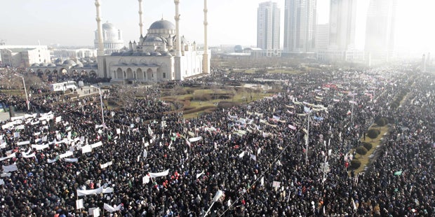 In der Hauptstadt der russischen Kaukasusrepublik Tschetschenien haben nach offiziellen Angaben 800.000 Menschen gegen die Veröffentlichung von Mohammed-Karikaturen in der jüngsten Ausgabe der Satirezeitung "Charlie Hebdo" demonstriert. "Dies ist eine Kundgebung gegen diejenigen, die die islamische Religion beleidigen", rief der kremltreue Präsident Ramsam Kadyrow am Montag in Grosny.