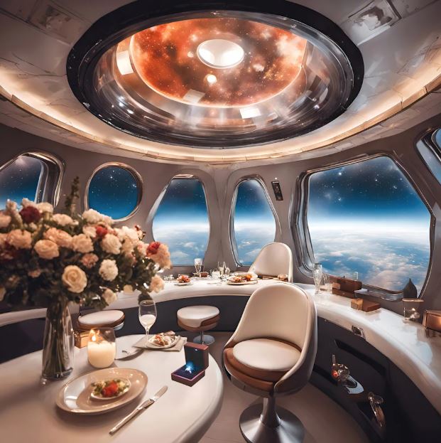 Für den Antrag bringt der Roboter eine leuchtende Truhe, die sich mit einem Code öffnet. Das Ring-Etui erscheint – der Antrag erfolgt inmitten von Sternen und Schwerelosigkeit. Nach der Landung wartet eine weitere Überraschung: Das gesamte Erlebnis wurde gefilmt.