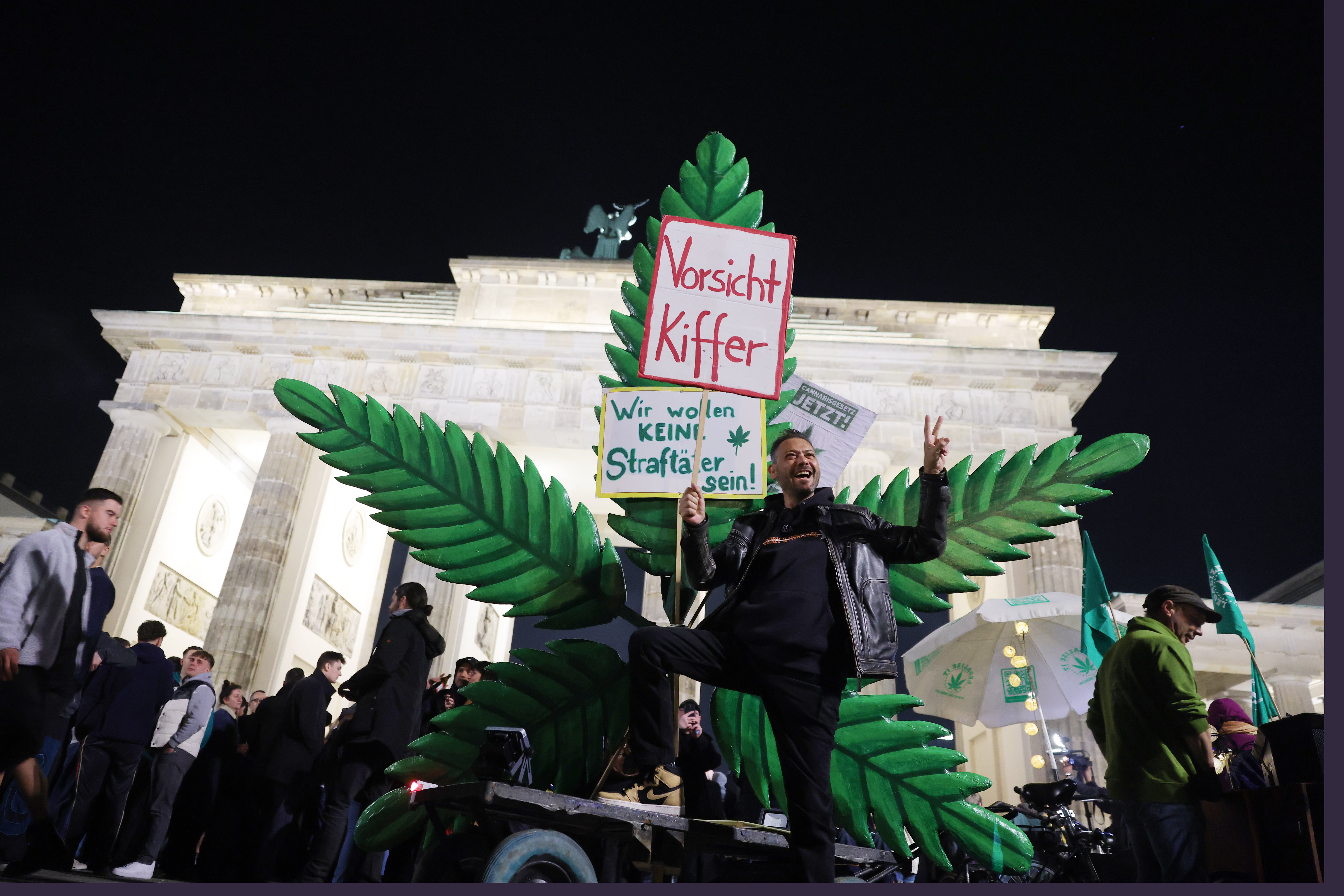 Vor dem Brandenburger Tor in Berlin haben sich mehrere hundert Personen pünktlich um Mitternacht Joints angezündet. Unter einem meterhohen Cannabis-Blatt wurde die Legalisierung in ausgelassener Stimmung mit Reggae-Musik gefeiert. Organisiert und bei der Polizei angemeldet hat die Veranstaltung die Hauptstadt-Ortsgruppe des Deutschen Hanfverbandes (DHV). "Wir können uns endlich zeigen, wir müssen uns nicht mehr verstecken", freute sich Henry Plottke, ein DHV-Mitglied, gegenüber der dpa über die "neugewonnenen Freiheitsrechte". An zahlreichen Orten in Deutschland feiern Aktivistinnen und Aktivisten am Ostermontag die Legalisierung und laden zum gemeinsamen Kiffen, zu Diskussionsrunden und Demonstrationen ein.