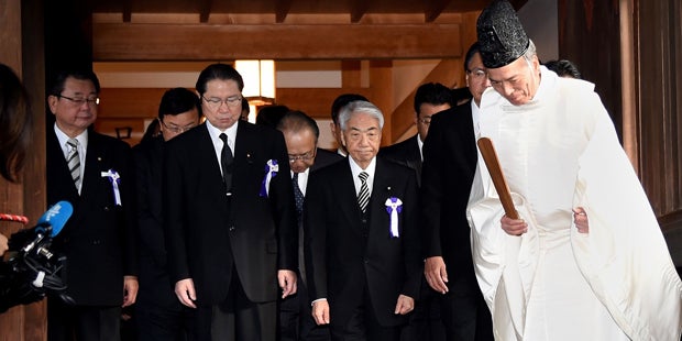 Die Politiker beteten beim Yasukuni-Schrein für Kriegstote.