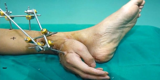 Um die Hand dennoch zu retten, gingen die Ärzte einen ungewöhnlichen Weg: Sie nähten die abgetrennte, rechte Hand an den Knöchel des linken Beins von Xiao Wei-an. Die Hoffnung der Ärzte war, dass sich Xiao so besser von seinen schweren Verletzungen erholen konnte.