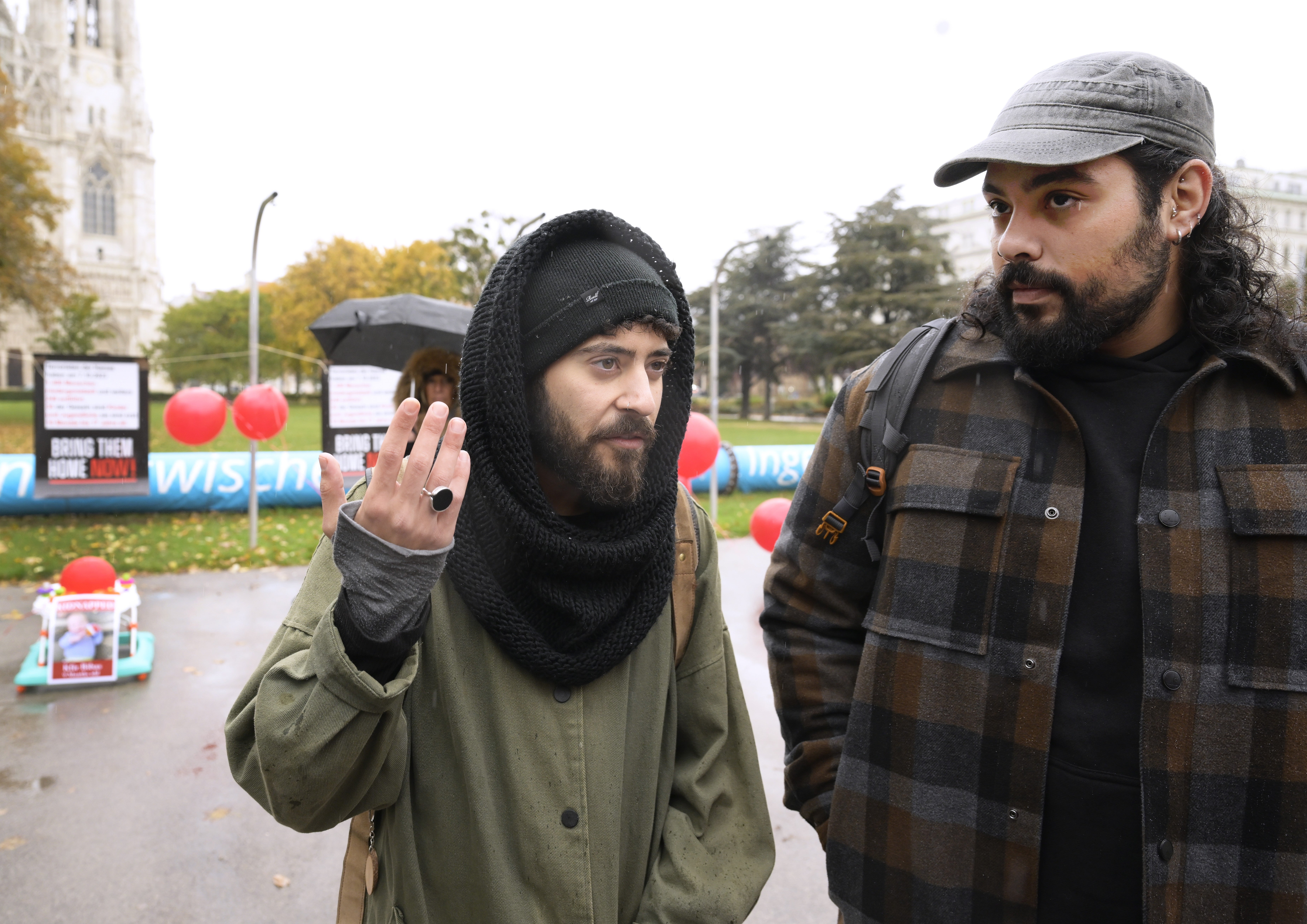 "Es war nicht nur ein Abschlachten auf einer Party, kein normaler Angriff auf Juden. Es war eine grausame Attacke gegen die Menschlichkeit", sagt der Israeli Ahia Meir-Malul, ein Überlebender des Hamas-Angriffs auf ein Festival in Israel, zur APA. Er und sein Freund Oz Iachbes waren am Montag in Wien, um bei einer Kundgebung der Aktion "Bring them home now!" zur Erinnerung an die rund 240 Geiseln von ihrem Erlebten zu erzählen.