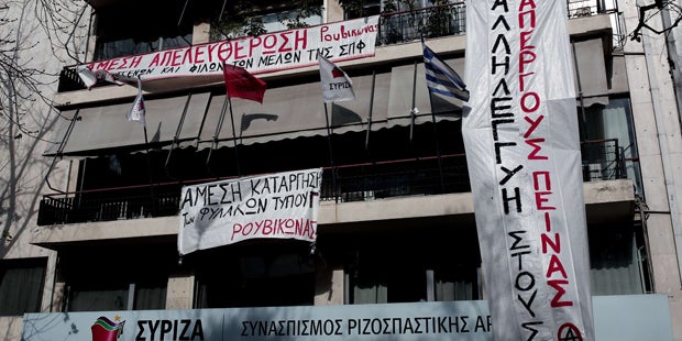 Dutzende Anarchisten stürmten die Zentrale der Tsipras-Partei.