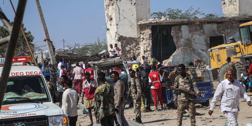 Augenzeugen hatten von einem Bild der Verwüstung gesprochen, nachdem ein mit Sprengstoff beladener Lastwagen an einem Kontrollpunkt in einem belebten Stadtviertel während des morgendlichen Berufsverkehrs in die Luft geflogen war. Obwohl es zunächst kein Bekennerschreiben gab, wird hinter dem Anschlag die terroristische Al-Shabaab vermutet.
