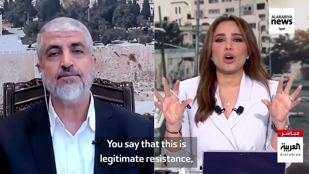 Eine Moderatorin des Senders bezweifelt darin die Argumentation des Hamas-Mitglieds Khaled Mashal, der Großangriff sei Teil des "legitimen Widerstands" der Palästinenser.