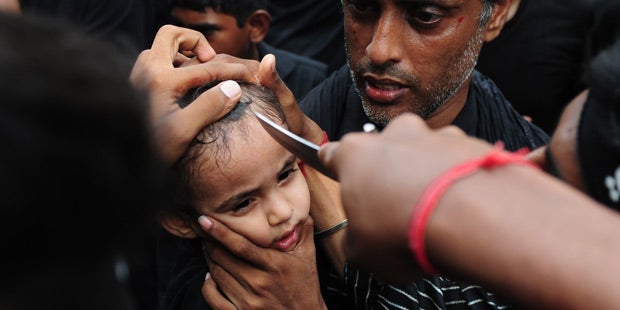 Das Ashura-Fest wird von Millionen Schiiten in aller Welt gefeiert. Es ist der Höhepunkt des Trauermonats Muharram. Während der Feierlichkeiten fügen sich viele Pilger mit Geißeln, Messern und Schwertern tiefe Wunden zu. Die Fotos gehen um die Welt und schocken. Selbst vor Kindern wird kein Halt gemacht. Mit Messern werden die Kleinkidner am Kopf verletzt - alles im Namen des Glaubens