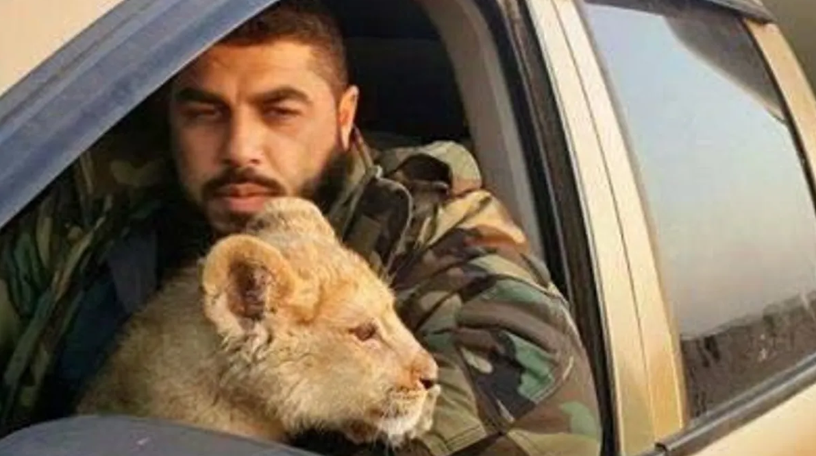Berichten zufolge soll der ehemalige Taxifahrer als Soldat der 25. syrischen Division (auch Tiger Forces genannt) einen Löwen aus einem Zoo gestohlen haben. Das Tier hielt er dann zuhause und soll ihm die Leichen seiner Feinde gefüttert haben, die er selbst vorher ermordet hatte.
