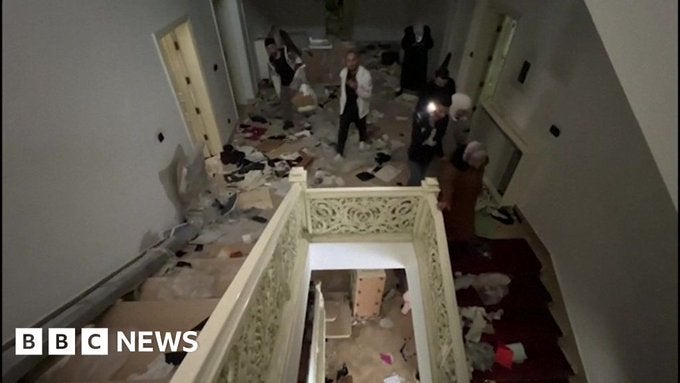 Ein von Reuters bestätigtes Video aus einem anderen Präsidenten-Palast, zeigt auch dort Gruppen von Männern und Frauen, die über einen weißen Marmorboden und durch hohe Holztüren gehen. Ein Mann trägt eine Vase in der Hand, ein großer Kasten mit angelehnten Türen ist leer.