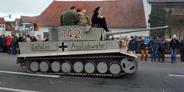 „Ilmtaler Asylabwehr“ – diese Aufschrift auf einen als Panzer dekorierten Faschingswagen sorgt derzeit in Deutschland für einen Eklat. Bekannt wurde der Schnappschuss durch ein Posting vom Schauspieler Florian Simbeck. Der nunmehrige SPD-Politiker wurde einst durch seine Rolle als Stefan vom Comedy-Duo "Erkan & Stefan" berühmt.