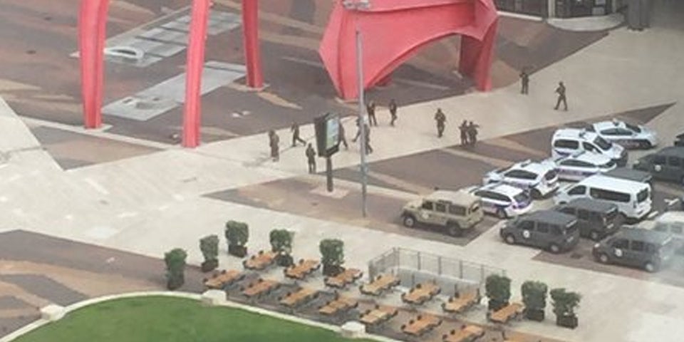 Ein Einkaufszentrum und der Bahnhof des Geschäftsviertels wurden geräumt, Züge hielten dort nicht mehr. Auf Fernsehbildern war ein großes Polizeiaufgebot zu sehen, auch Soldaten waren an Ort und Stelle. Die Menschen mussten beim Verlassen der Örtlichkeiten die Hände heben und wurden von den Einsatzkräften kontrolliert.