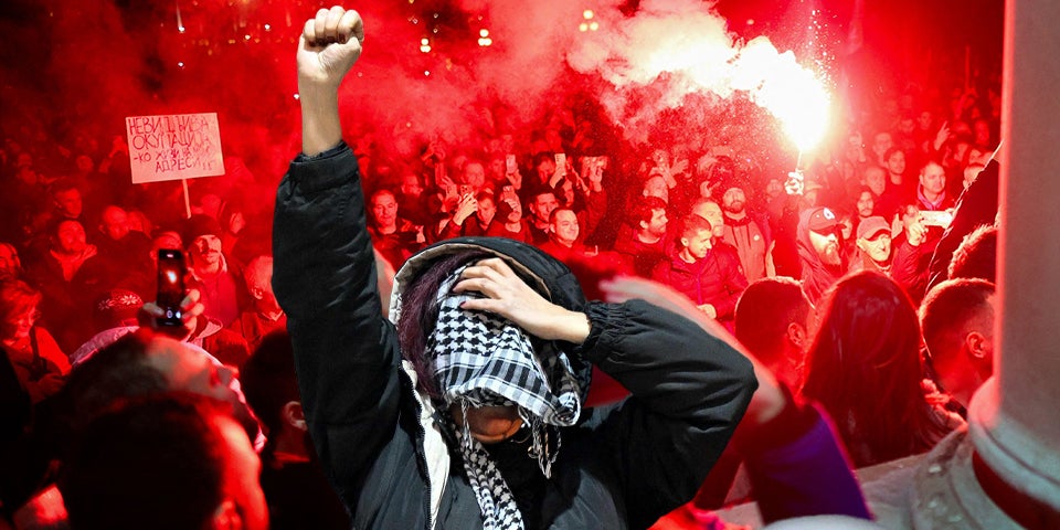 Bei den vorgezogenen Parlamentswahlen am vergangenen Wochenende hatte die SNS nach vorläufigen Ergebnissen 46,72 Prozent der Stimmen erhalten, gefolgt vom Mitte-Links-Oppositionsbündnis "Serbien gegen Gewalt" mit 23,56 Prozent. Srdjan Milivojevic und Vladimir Obradovic von der Koalition "Serbien gegen Gewalt" versuchten unter Anfeuerungen der Menge vergeblich, die Tür des Rathauses zu öffnen. Ein weiteres Mitglied von "Serbien gegen Gewalt", Marinika Tepic, befindet sich seit der Wahl im Hungerstreik, um deren Annullierung zu erzwingen.