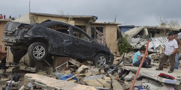 Mexiko. Der Tornado wütete im Norden Mexikos, in Ciudad Acuña, einer Grenzstadt zu Texas: „Autos liegen auf den Häusern, tote Menschen auf den Straßen“, beschreiben geschockte Augenzeugen: „Es ist das totale Chaos. Nichts steht mehr, keine Mauern, keine Dächer.“ Der Notstand wurde ausgerufen: „Für diejenigen, deren Häuser schwer beschädigt wurden, haben wir Notunterkünfte eingerichtet“, sagte Mexikos Präsident Enrique Pena Nieto.