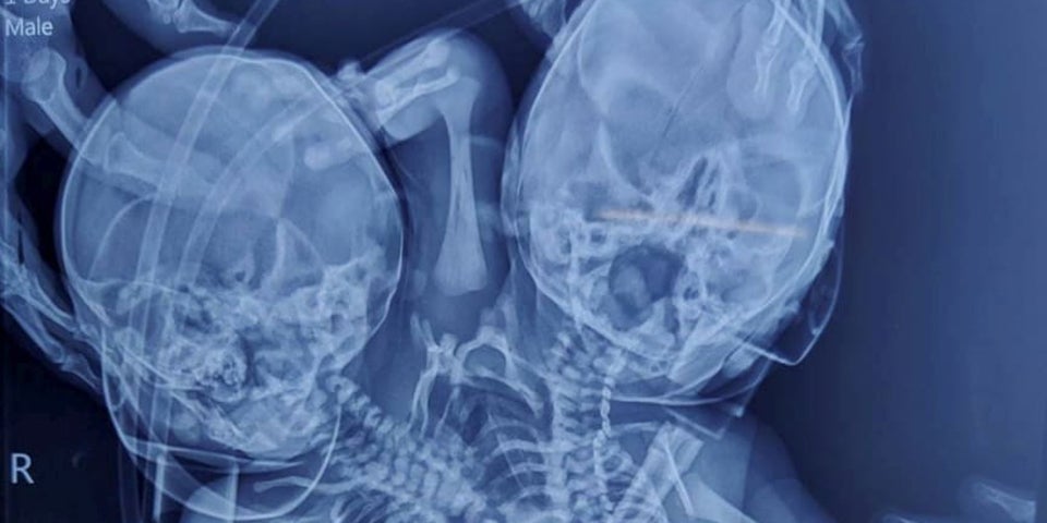 Das Baby wurde mit zwei Köpfen, zwei Wirbelsäulen, zwei Herzen und drei Armen geboren.