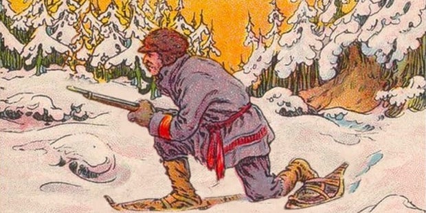 In der Beschreibung des Bildes heißt es: "Helft Trapper John, dem weltgrößten Bären-Töter. Die Bären fürchten und hassen ihn. Aber während er einen neuen Grizzly zu seiner neuesten Trophäe machen will, haben die Bären andere Pläne.