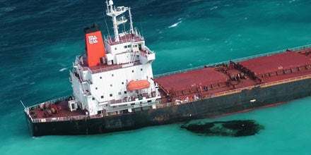 Das 230 Meter lange Schiff schrammt zwar durch den Wellengang weiter über die Korallenbänke, doch gehen Experten davon aus, dass der Rumpf intakt bleibt. Einen Tag nach dem Unglück waren am Sonntag etwa vier Tonnen Öl ausgelaufen. Der Kraftstoff wurde mit Chemikalien besprüht und zersetzte sich.
