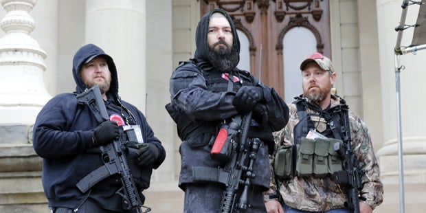Vor dem Gebäude versammelten sich Dutzende weitere Menschen und hielten Protestschilder hoch. Auf einem der Schilder wurde die demokratische Gouverneurin von Michigan, Gretchen Whitmer, als Adolf Hitler dargestellt. Einen Tag zuvor hatte ein Gericht in Michigan laut örtlichen Medienberichten entschieden, dass die von Whitmer am 24. März erlassenen Ausgangsbeschränkungen zulässig sind.