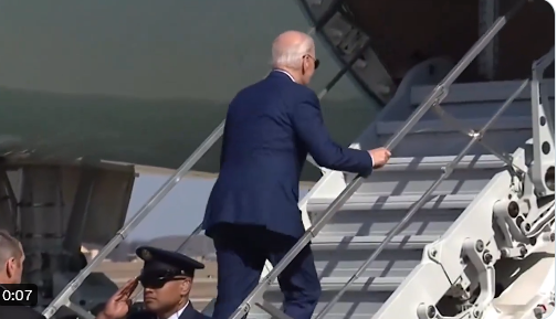 They don’t even let Joe Biden walk up the real stairs on Air Force 1 now — and they have a secret service agent stationed at the bottom to catch him — and he almost tripped today leaving for California. pic.twitter.com/2rvuGVqZ1C