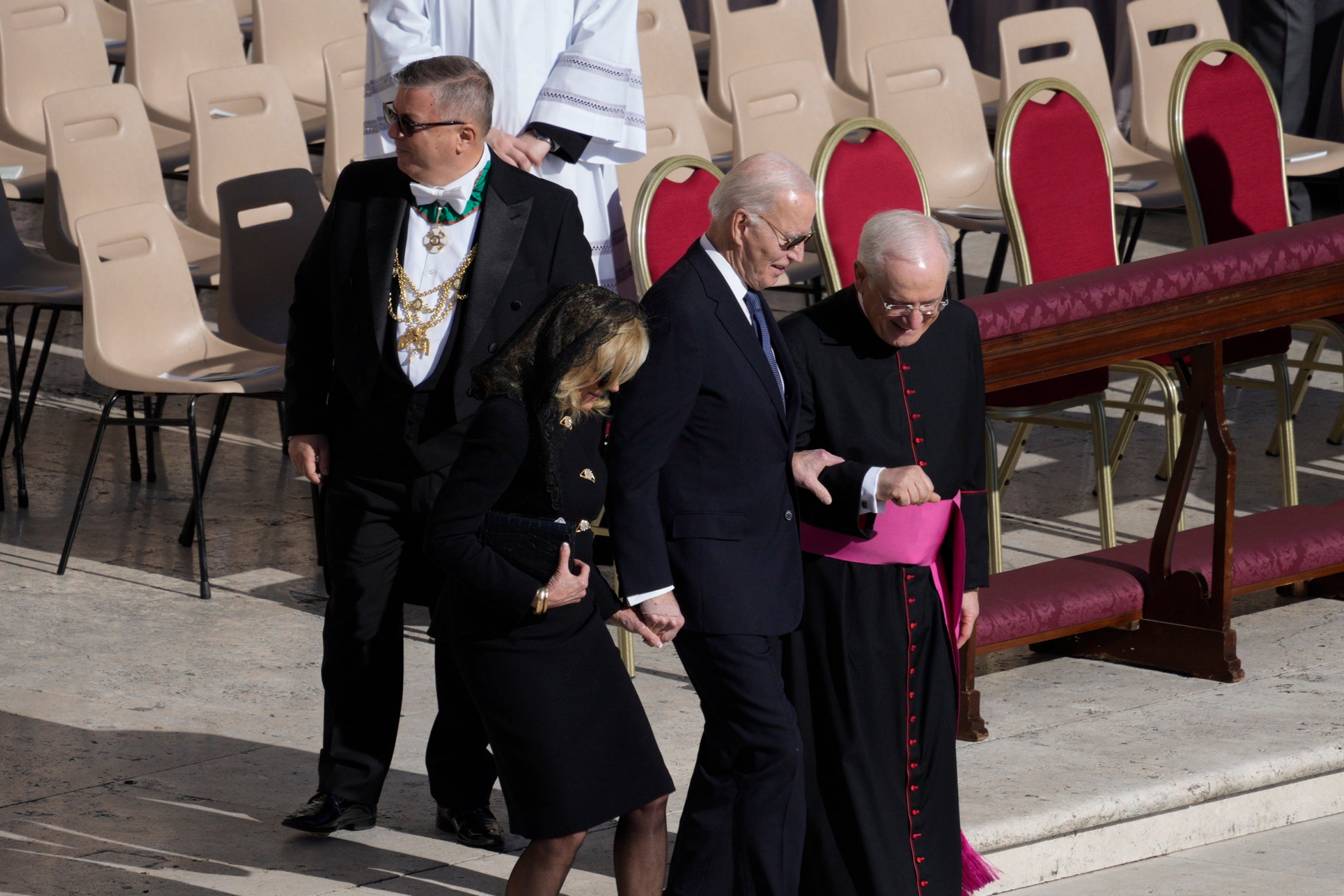 Der 82-Jährige wirkt dabei körperlich etwas angeschlagen und muss bei der Treppe von seiner Frau und einem Priester gestützt werden. Biden ist gläubiger Katholik. Er war der zweite katholische US-Präsident der Geschichte.