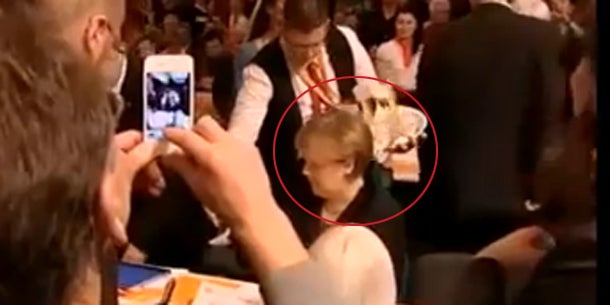 Sehen Sie hier den Clip: So flossen 5 Bier in den Nacken von Kanzlerin Merkel: