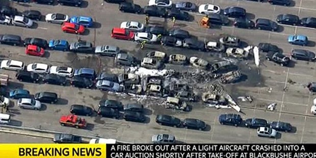 Die Embraer Phenom 300 war beim Landeanflug auf den Blackbushe Flughafen über die Landebahn hinausgeschossen und unter den parkenden Autos aufgeprallt. Die Maschine brannte komplett aus, auch die Fahrzeuge im Umkreis standen in Flammen.