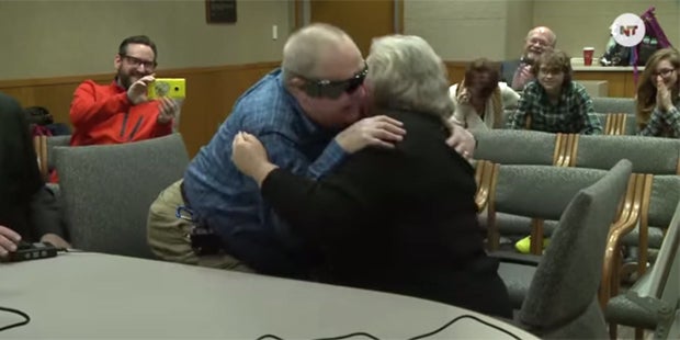 Berührender Moment in einer Klinik in Minnesota (USA): Allen Zderad sieht seine Gattin Carmen zum ersten Mal seit 10 Jahren. Der Großvater von 10 Kindern war vor 10 Jahren an Retinitis pigmentosa erkrankt und hatte sein Augenlicht verloren. Dank eines bionischen Auges kann er jetzt wieder sehen: