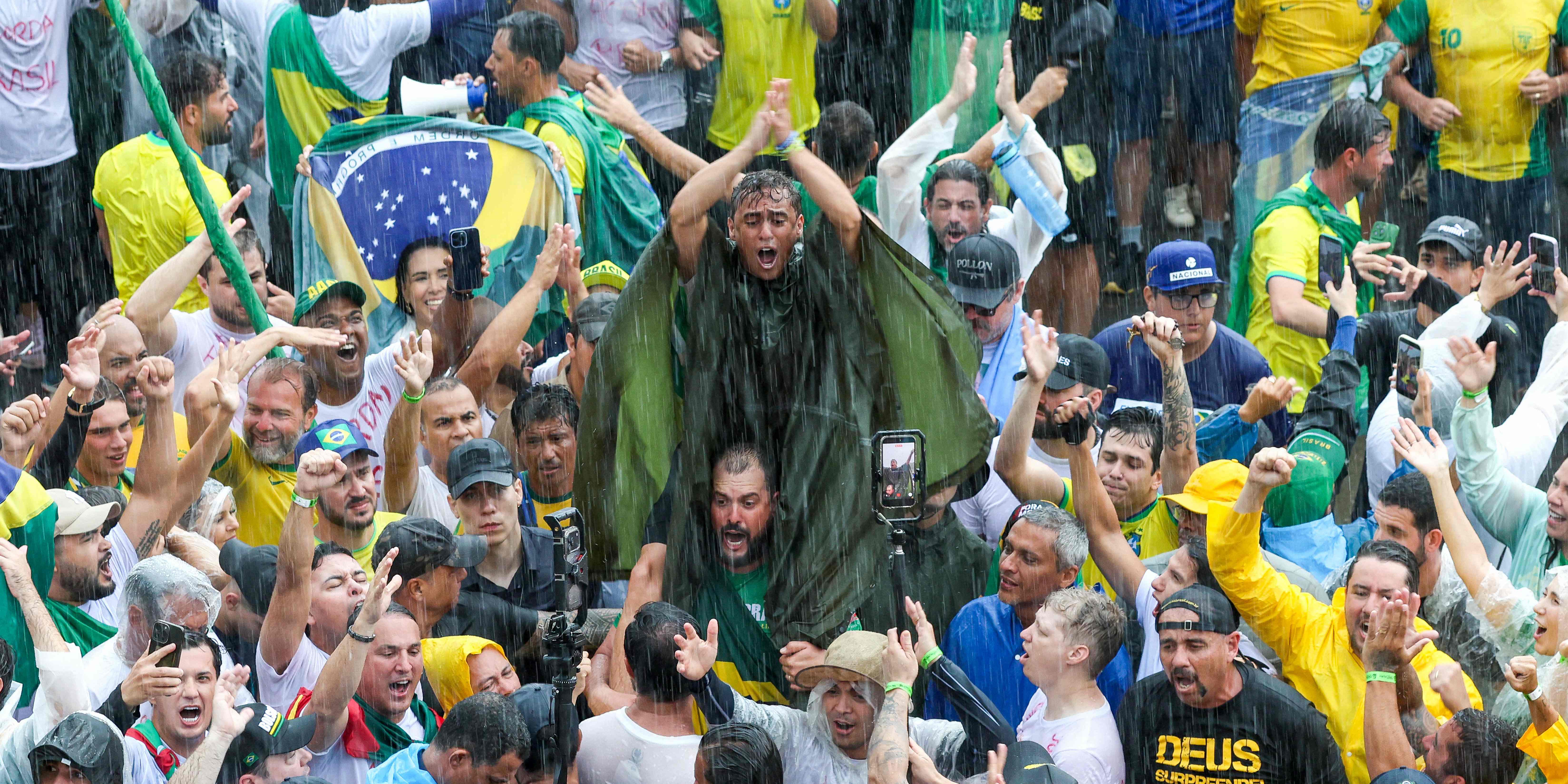 Der Vorfall ereignete sich am Sonntag in der Hauptstadt Brasília, wie die Feuerwehr mitteilte. Dort hatten sich bei starkem Regen tausende Anhänger des inhaftierten ultrarechten Ex-Staatschefs Bolsonaro versammelt, der wegen eines Putschversuchs zu 27 Jahren Gefängnis verurteilt worden war.