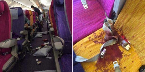 Eine Boeing 777 war auf dem Weg von Jakarta nach Bangkok. 77 Passagiere und 12 Crew-Mitglieder waren zum Zeitpunkt an Bord, als plötzlich heftige Turbulenzen auftraten. Sechs Menschen wurden dabei verletzt. Ein Passagier wurde sogar aus seinem Sitz geschleudert. Fotos zeigen, dass dieser Platz aussieht, wie nach einem Blutbad. Überall war Blut.