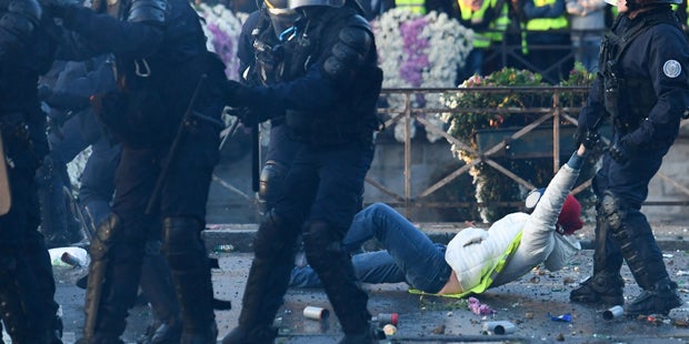 Rund 244.000 Menschen sind laut französischem Innenministerium am Samstag auf die Straßen gegangen und haben stellenweise den Verkehr aufgehalten, um gegen die geplante Erhöhung der Steuern auf Diesel und Benzin zu protestieren. Offiziellen Angaben zufolge gab es mehr als 2.000 Protestaktionen.