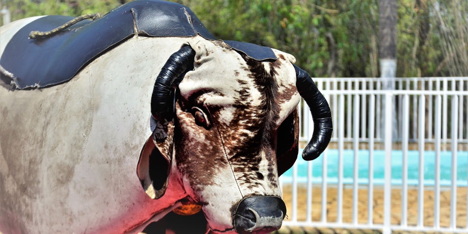 Immer wieder kommt es beim Bullenreiten zu schweren Unfällen. Erst vergangenes Jahr starb im englischen Sheffield eine junge Frau, nachdem sie von einem Bullen gefallen war.