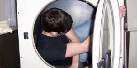 Bub kletterte in Großbritannien in den Trockner und schloss die Tür.
