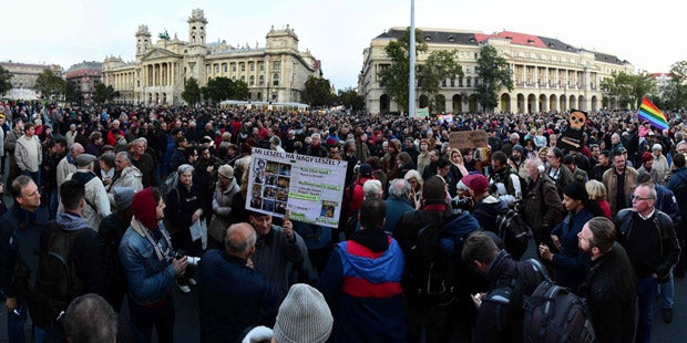 Proteste vor dem Parlament - Solidarität mit "Nepszabadsag".