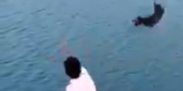 Diese Aufnahme schockiert: Ein Video, das vermutlich in Indonesien aufgenommen worden ist, zeigt, wie ein Teenager einen lebendigen Welpen in einen See voller Krokodile wirft. Lächelnd schleudert er den kleinen Vierbeiner ins Wasser - der Hund überlebt.