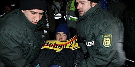 Zuvor hatten Einsatzkräfte eine Greenpeace-Blockade vor dem Verladebahnhof Dannenberg durch einen Bierlaster beendet. Nach elf Stunden waren zwei einbetonierte Aktivisten aus dem Lkw geholt worden. Bis 06.15 Uhr wurden die Greenpeace-Anhänger mit Hilfe von Presslufthämmern und Trennschleifern aus dem Beton gelöst. Ein Mann und eine Frau waren laut Greenpeace in einer Metall-Beton-Konstruktion so befestigt, dass die Polizei den Lkw nicht fortbewegen könne, ohne sie zu verletzen.