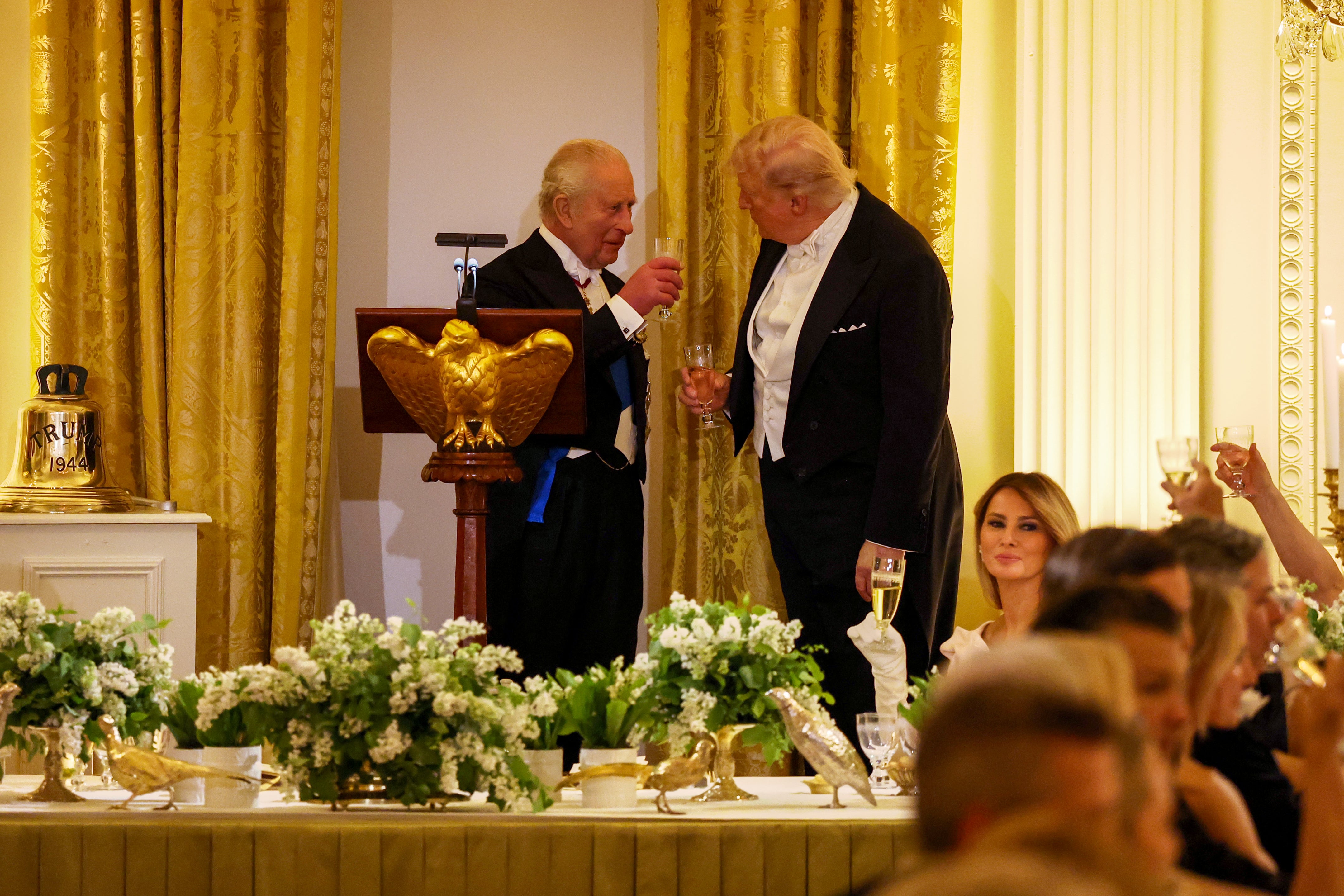 König Charles brachte das Geschenk aber auch mit der militärischen Allianz zwischen den USA und Großbritannien in Verbindung. Amerika habe eine entscheidende Rolle als Verteidiger der Freiheit in Europa gespielt - "und ich werde das nie vergessen", sagte der Monarch. Im nächsten Atemzug verwies er darauf, dass die Freiheit angesichts der russischen Invasion der Ukraine wieder angegriffen werde. Unter Trump wurde die US-Unterstützung für die Verteidigung der Ukraine stark zurückgefahren.