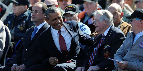 Bei einer feierlichen Zeremonie wird der Alliierten-Landung in der Normandie vor 70 Jahren und Zehntausender Kriegsopfer gedacht - und Barack Obama kaut auf der Ehrentribüne lässig Kaugummi. Dieser Fauxpas hat dem US-Präsidenten am Freitag einen Sturm der Entrüstung eingebrockt. Auf Twitter empörten sich zahlreiche Nutzer über Obamas "schamloses" und "vulgäres" Verhalten.