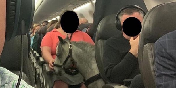 So auch auf diesem American-Airlines-Flug. Das Pony „Flirty“ durfte mit an Bord, weil es seiner Besitzerin gegen Panikattacken hilft.