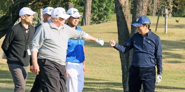 Eine Runde Golf stand auch bei Abes Besuch in den USA im Februar auf dem Programm. Damals hatte der japanische Regierungschef betont, seine Leistungen reichten nicht an die des US-Präsidenten heran.