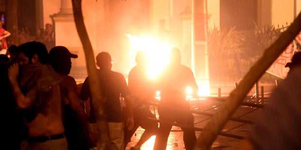 Hunderte Regierungsgegner lieferten sich daraufhin Zusammenstöße mit der Polizei, rissen Zäune und Barrieren an den Eingängen nieder und schmissen Fenster ein. Anschließend verwüsteten sie die Büros von Senatoren, die für die Verfassungsänderung gestimmt hatten.
