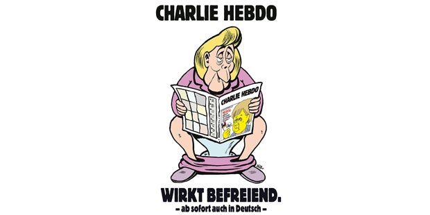 Natürlich Merkel. Das französische Satireblatt "Charlie Hebdo", bekannt für frechen bis derben Humor, kommt nach Deutschland, und was liegt da näher, als die Bundeskanzlerin in einer Karikatur zu verewigen. Und so sitzt eine lächelnde Angela Merkel mit einem Exemplar der Satirezeitung auf einer Kloschüssel, dazu die Überschrift "Charlie Hebdo wirkt befreiend - jetzt auch in Deutsch".