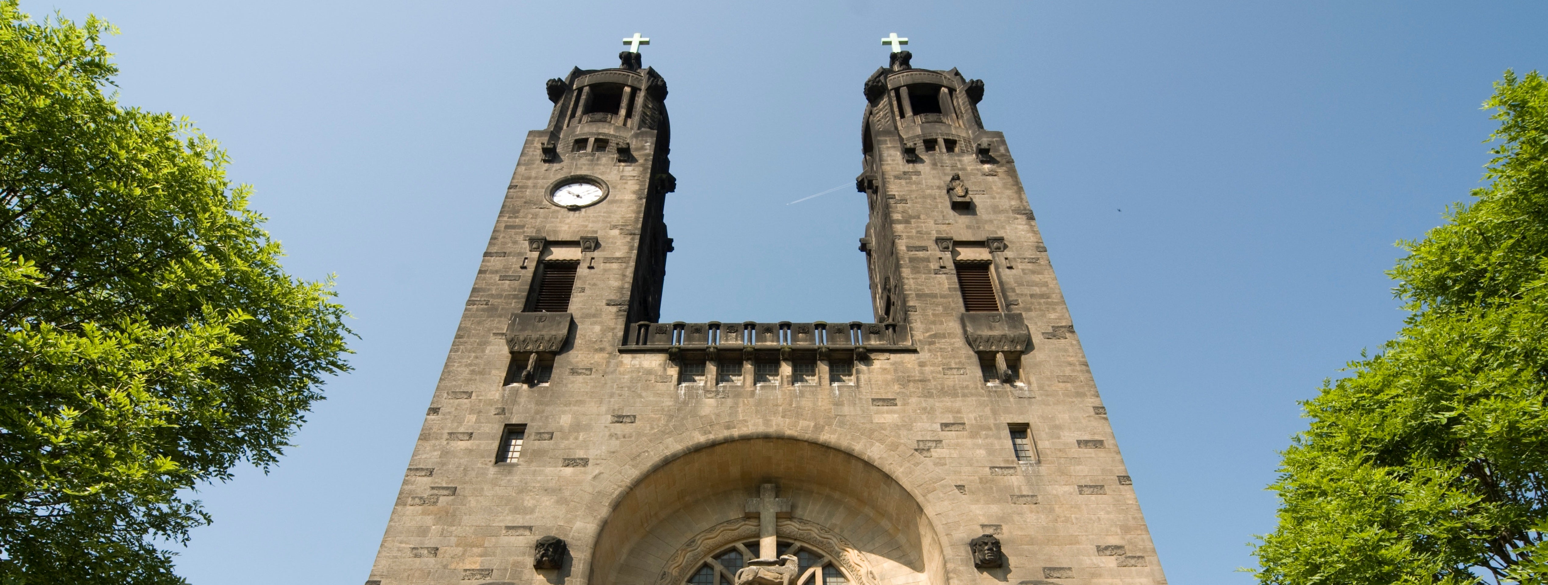 Sie ist eines der markantesten Bauwerke Dresdens: die Christuskirche mit ihren hohen Doppeltürmen, weithin sichtbar auf einem Hügel im Stadtteil Strehlen.