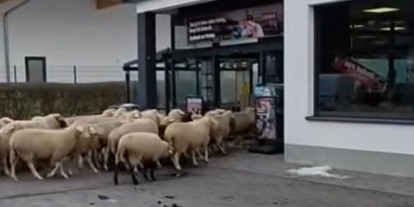 Laut der Vermutung des Schäfers folgte ein Schaf einem Kunden, in dessen große Tasche das Tier Futter oder Salz vermutete. Instinktiv folgten ihm die restlichen Schafe.